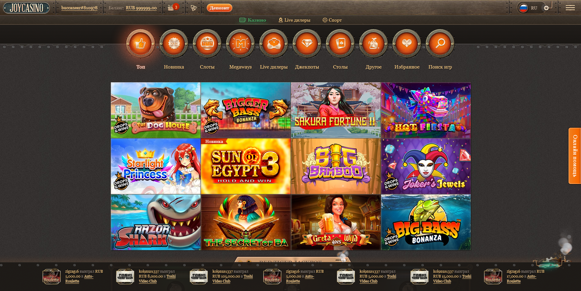 Данный скрипт представлен в оформлении оригинального сайта Joycasino.
